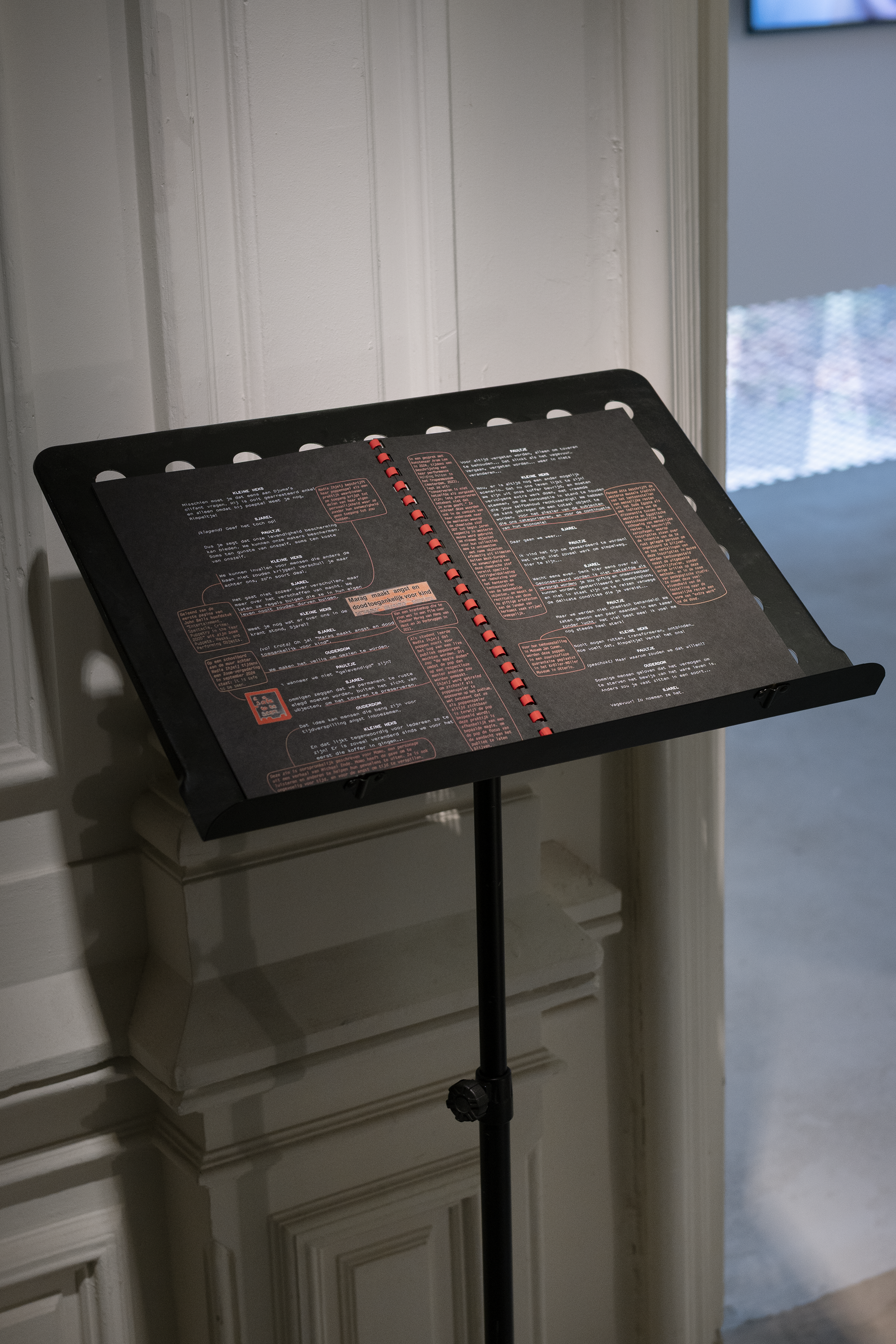 The script was developed based on Meeting of a Linden Tree / Ein Lindentreffen, a similar work from 2024. The writing was informed by a series of conversations with artists, puppeteers, and researchers Pansee Atta, Aram Lee, Ada M. Patterson, and Nadia Ihjeij. The conversations focused on their personal relationships with exhibiting their own performance costumes, objects, or puppets, and also their research on the traditions of exhibition in Western museological practice.