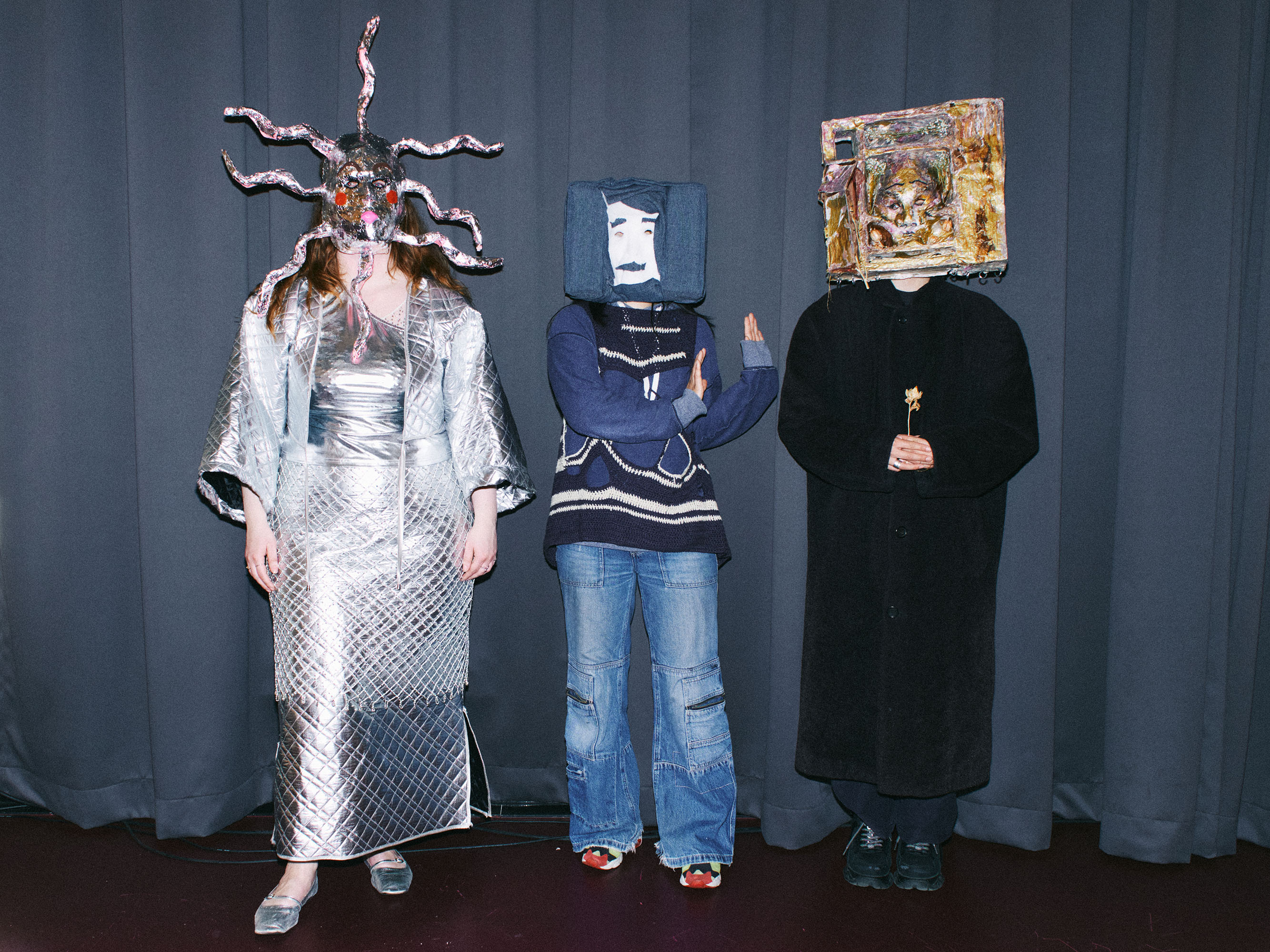 Meet your Mask was a five-week introductory mask-making workshop. Participants made their own papier–mâché masks alongside shared research in puppetry and masquerade. In later sessions, the group practiced how to perform in their masks with the dramaturgical guidance of object-based theater maker and artist Chun Shing Au. The workshop culminated in a public event at Hartwig Proxy with an improvised performance by Anya Palamartschuk, Chaelim Kwon, and Romy Day Winkel, with Lili Huston-Herterich in the mask of Helen Bolderman.